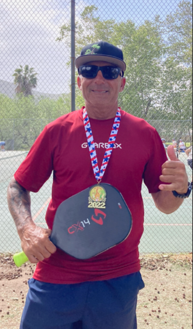 I’m a native San Diegan and 1980 graduate of Point Loma High School. I got started in pickleball during COVID when some friends introduced me to the sport, and I fell in love with it. I’ve been playing for 5 1/2 years, coaching for four years, and I just love the sport.